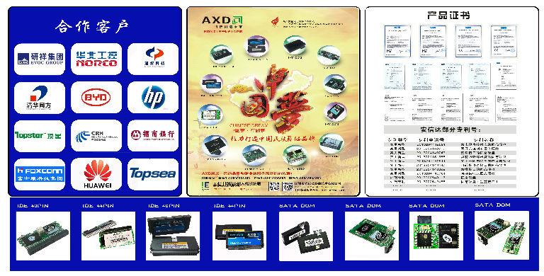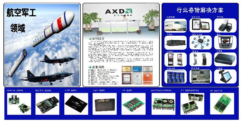 AXD专业从事SSD固态硬盘、DOM电子硬盘、云存储器及其相关存储解决方案的研发、设计、生产、销售及服务。AXD产品应用广泛,定位专业,凭借“订制级”定向为客户开发产品为优势,领军行业市场。客户涵盖工业控制、自动化、嵌入式系统、金融、通信、证券、医疗、教育、军工、航天、交通、安防、电力、网络终端、网络服务器、信息安全、数字标牌等行业。